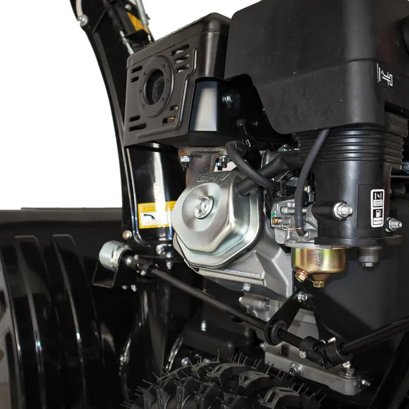 В самоходной снегоуборочной машине Huter SGC 8000 установлен 4-тактный двигатель с верхним расположением клапанов (OHV). Такая конструкция мотора обеспечивает высокий КПД и долговечность.