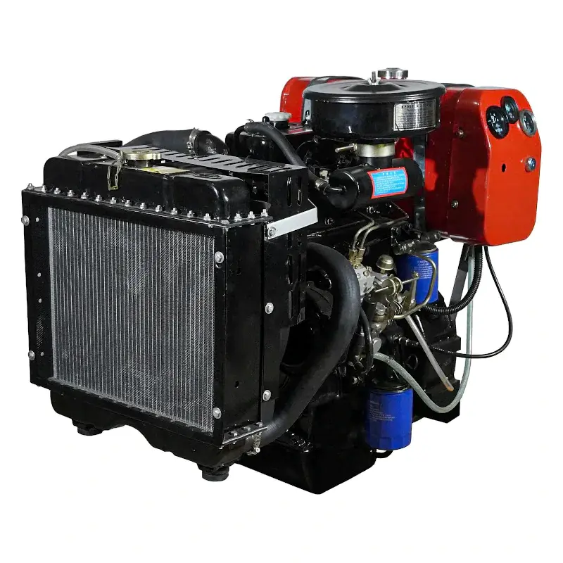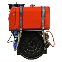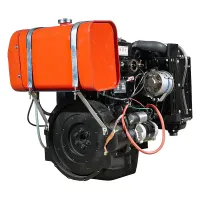 Дизельный двигатель имеет горизонтальный вал и водяное охлаждение.