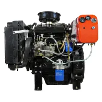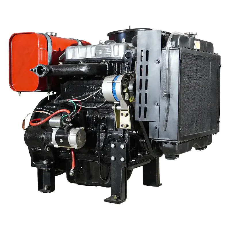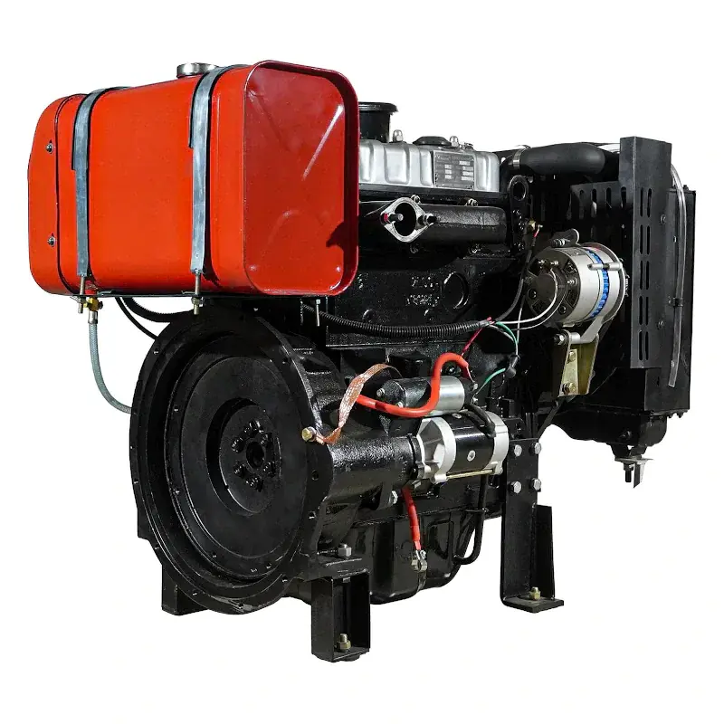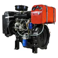 Дизельный двигатель имеет горизонтальный вал и водяное охлаждение.