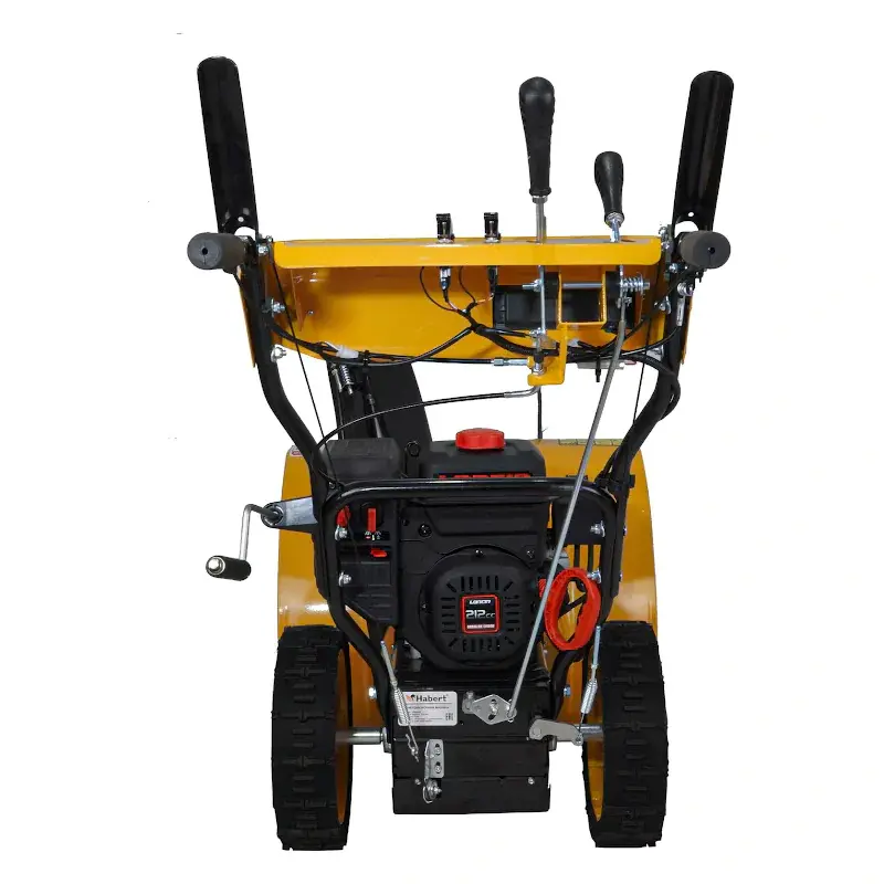 Бензиновый снегоуборщик Habert HBM28D с безвоздушными шинами за один проход позволяет расчищать дорожку шириной 71 см. Эта модель снабжена электрическим стартером для быстрого запуска двигателя, фонариком, а также подогревом ручек.