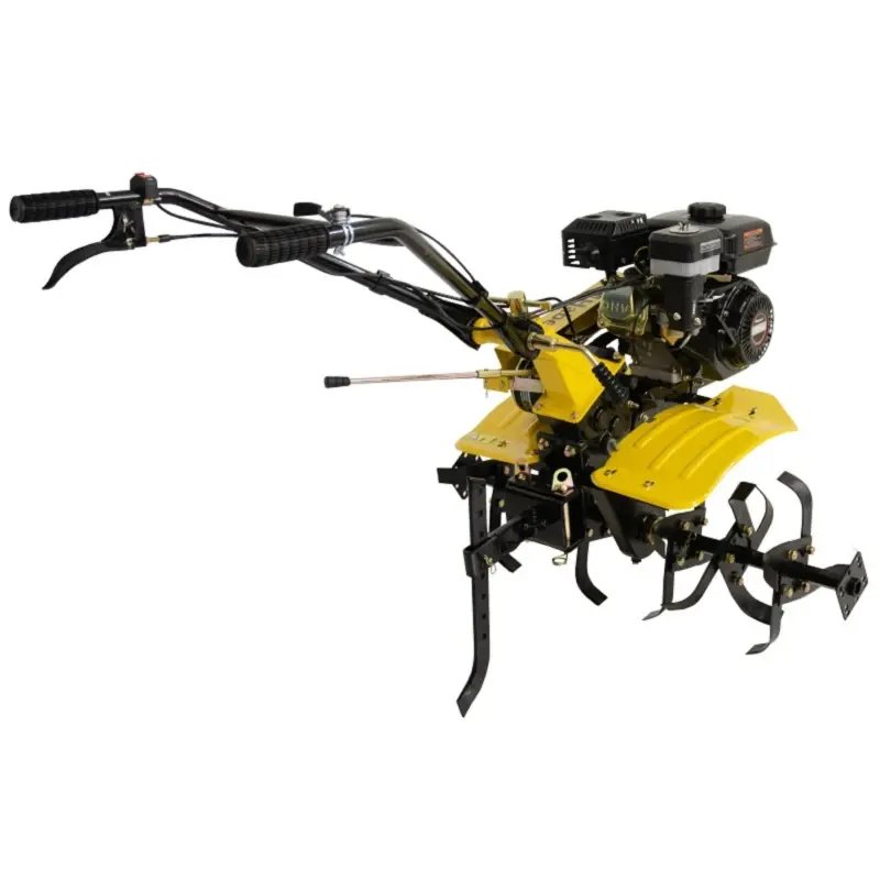 Регулировка руля управления мотоблока осуществляется в вертикальной и горизонтальной плоскостях, это позволяет адаптировать мотоблок под различные виды работ и делает его использование ещё более удобным. А компактные размеры и небольшой вес мотоблока, облегчает его транспортировку и хранение.