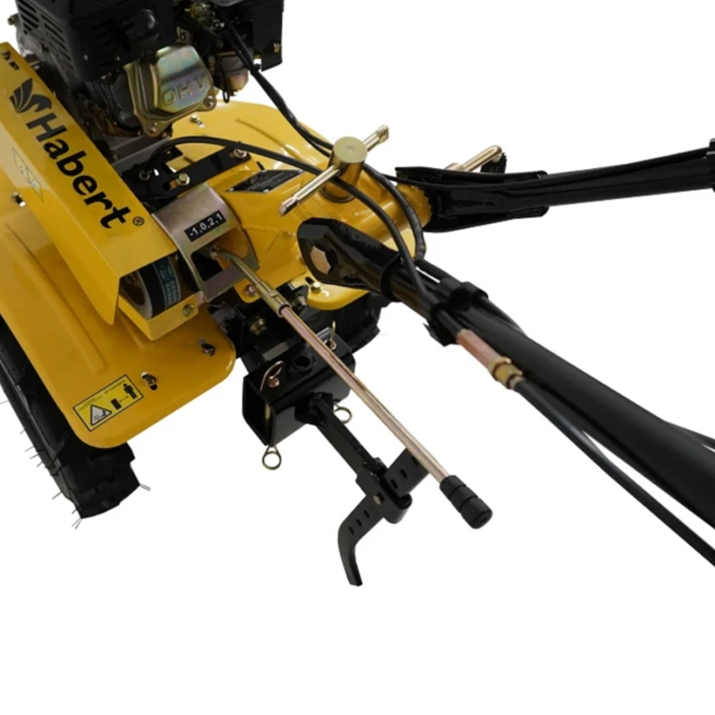 В качестве силового агрегата на мотоблоке используется четырехтактный бензиновый двигатель Habert HB170F с мощностью 7 л.с. Надёжный двигатель обеспечивает бесперебойную работу при интенсивном использовании, а установленный датчик уровня масла предотвращает повреждение двигателя при понижении уровня масла в картере ниже необходимого. Применяемый на двигателе воздушный фильтр с масляной ванной даёт лучшую фильтрацию воздушного потока, что благоприятно сказывается на ресурсе двигателя.