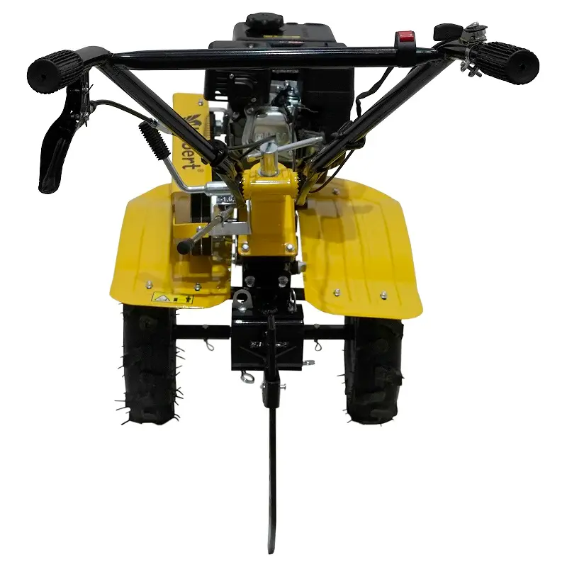 Бензиновый мотоблок Habert оснащен надежным в работе двигателем внутреннего сгорания с воздушным охлаждением. Шестеренчато-цепной редуктор обеспечивает мягкое переключение скоростей. На первой передаче легче вскапывать целину и удобно работать с окучником или картофелекопалкой. Задний ход повышает маневренность. Большие колеса с глубоким рисунком протектора обеспечивают отличную проходимость.