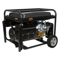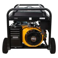 Бензиновый генератор работает на базе четырехтактного одноцилиндрового двигателя объемом 420 см3 мощностью 15 л.с. Мини электростанция вырабатывает однофазный переменный ток напряжением 220 В и частотой 50 Гц. Альтернатор имеет устойчивую к коррозии и высоким нагрузкам медную обмотку. Вы без проблем запустите двигатель с помощью ручного и электрического стартеров.