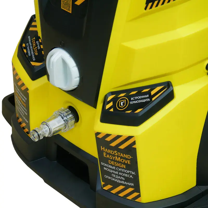 Защитная функция не позволит хранить мойку с остатками воды внутри. Шланг не отсоединится от пистолета, если вы не сольете остатки жидкости до конца после работы. Это предотвращает преждевременную поломку техники.