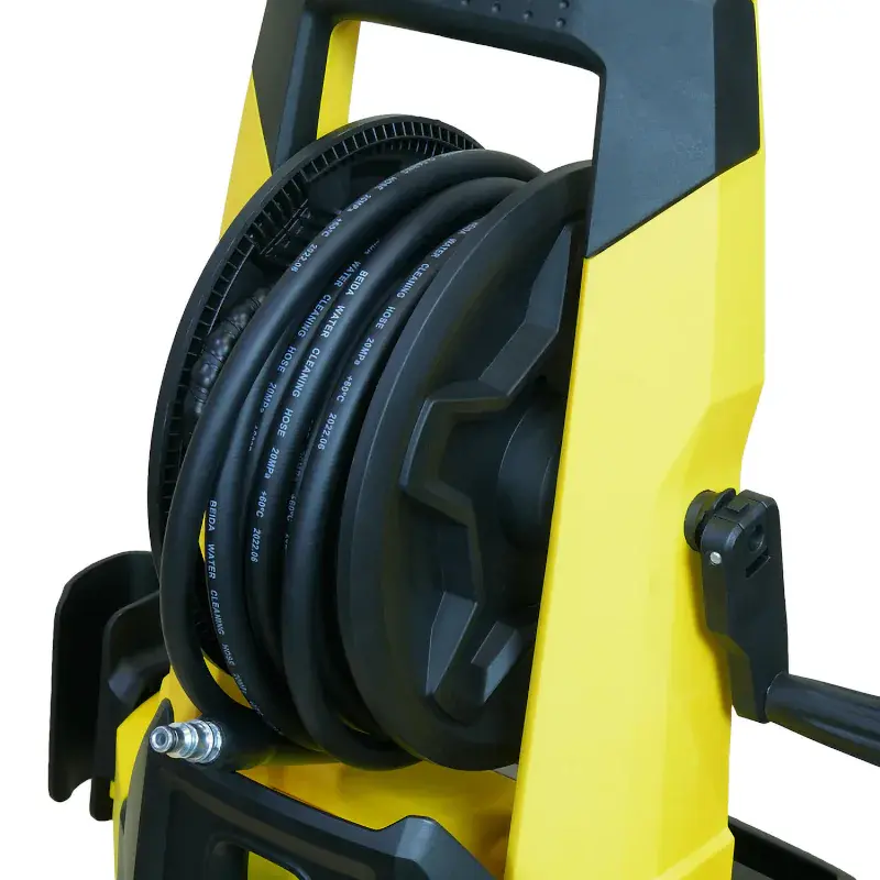 В верхней части аппарата высокого давления Hanskonner HPW9225R расположена катушка, на которую наматывается шланг для компактного хранения. Это не только удобно, но и помогает избежать случайного повреждения шланга. А для простого крепления насадок предусмотрена быстросъемная система QuickConnect.
