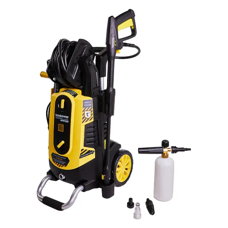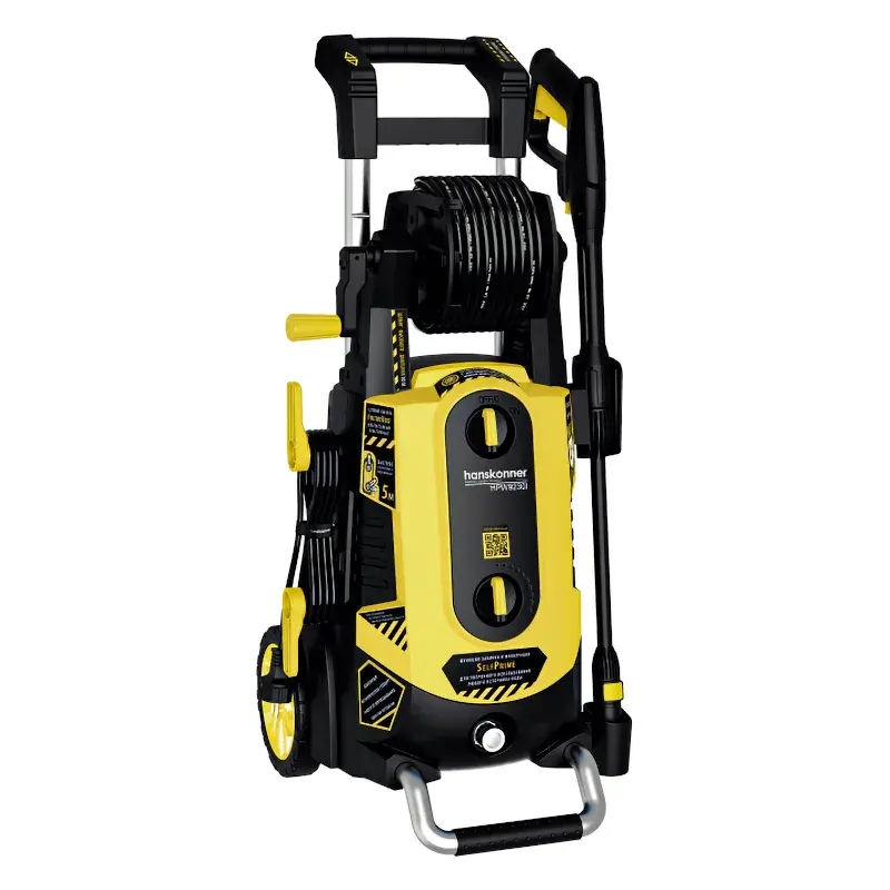 Мойка высокого давления Hanskonner HPW9230I с максимальным давлением 195 бар и производительностью 450 л/ч предназначена для очистки транспортных средств, лодок, фасадов зданий, ограждений и садового инвентаря с помощью чистой воды или моющего средства.