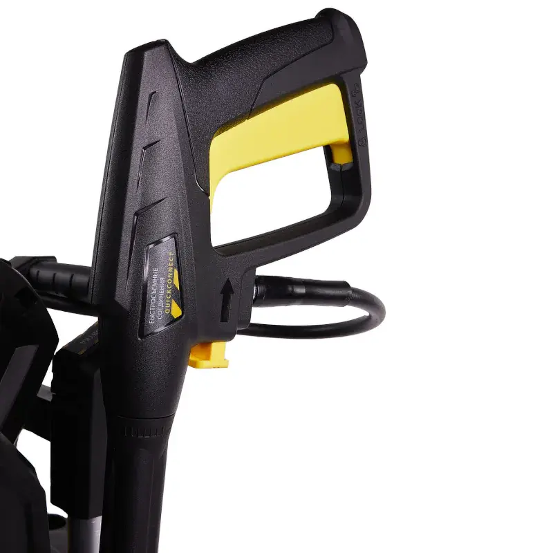 Мойку не потребуется долго подготавливать к использованию. Для установки насадок и рукоятки предусмотрено быстросъемное крепление OuckConnect, позволяющее подключать все необходимое одним движением руки. Шланг быстро разматывается за счет катушки на корпусе.