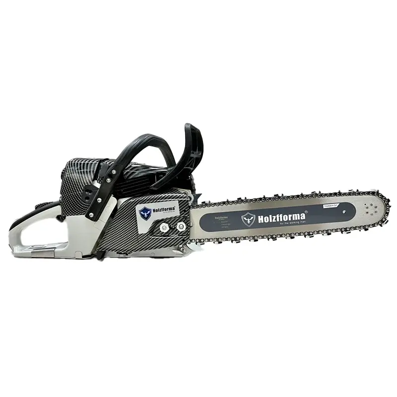 • Пила оснащена Антивибрационной системой Holzfforma AVS PRO, которая позволяет снизить вибрационную нагрузку передаваемую от двигателя на рукояти пилы, за счет пружинных демпферов на 35-40% по сравнению с обычными резиновыми