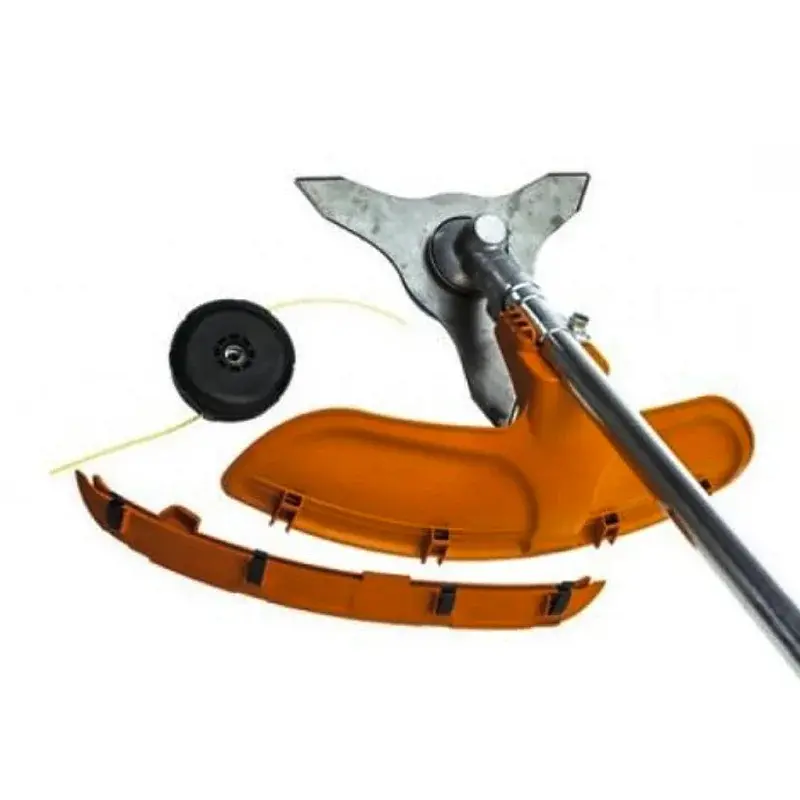 Велосипедная регилируемая рукоятка для наибольшего комфорта оператора во время работы с триммером. Универсальный защитный кожух