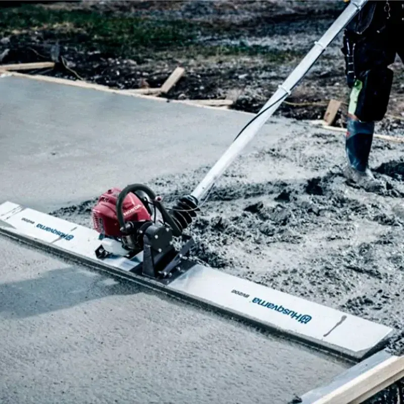 Виброрейка Husqvarna (Atlas Copco) BV20 G предназначена для уплотнения и выравнивания бетонных поверхностей после заливки, используется на тонких плитах напрямую, без применения вибратора. Рейка Husqvarna BV20 G обеспечивает высококачественное выравнивание благодаря V-образному нижнему профилю. Масса устройства невелика, а телескопическая ручка позволяет работать снаружи плиты. Виброрейка оснащена шарнирной рукояткой, вращая которую можно регулировать угол атаки алюминиевого профиля. Виброрейка Husqvarna (Atlas Copco) BV20 G создана на основе 4х тактного двигателя Honda GX 25 мощностью 1,0 л/с и возможностью регулировки скорости. Используется на открытых площадках. Благодаря специальной форме заглаживающего профиля и его полой поверхности рейка Husqvarna BV 20 G не тонет в бетоне, а плавает по поверхности, выравнивая и заглаживая ее. Механизм изменения угла атаки и секционная рукоять, которая может быть удлинена до 12м, позволяют оператору контролировать движение рейки на всем протяжении обрабатываемой поверхности.
