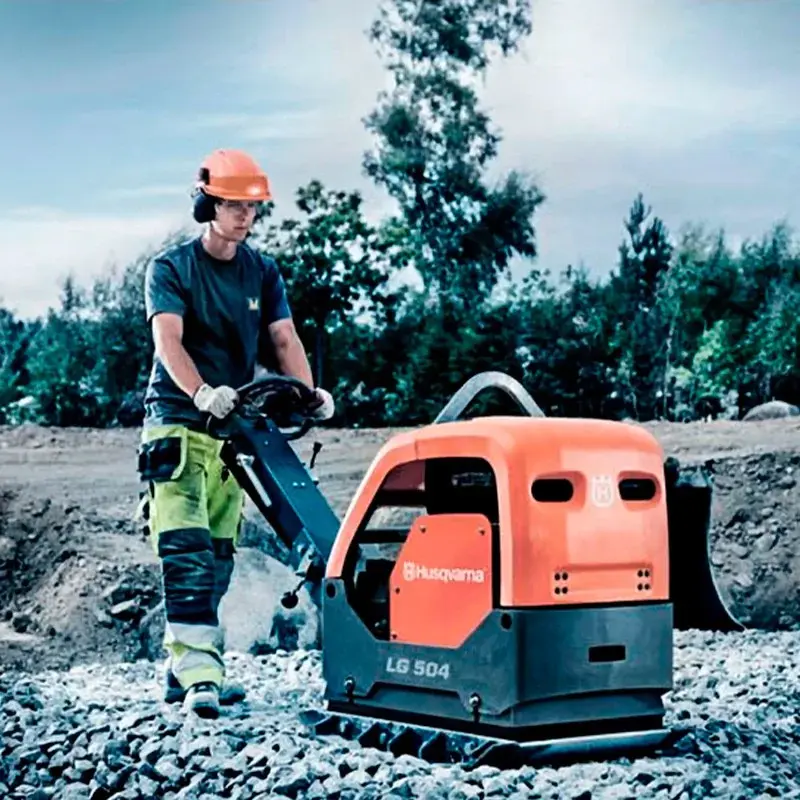 Виброплита Husqvarna LG 504 DEС - мощная виброплита предназначена для уплотнения несвязных грунтов, гальки, щебня, гравия, песка, крупнозернистого каменного материала на небольших площадях. Оснащена дизельным двигателем Hatz 1D81Z, мощность 9,2 кВт, сила удара 65 кН, скорость движения виброплиты 30 м/мин. Вес до 499 кг. Антивибрационная рукоятка, всепогодный прочный корпус, cкладная рукоять для транспортировки и хранения, доступ к узлам для ремонта и обслуживания. Модель с электростартером и счетчиком моточасов, индикатором уплотнения. ОСОБЕННОСТИ Гидравлический рычаг переднего/обратного хода. Двигатели с низким потреблением топлива и выбросами. Стальная рама для тяжелых условий эксплуатации оборудована подъемной проушиной. Рама и противоударный кожух защищают двигатель и трансмиссию. Благодаря днищевой плите среднего размера - 550 мм модель LG 504D позволяет эффективно выполнять работы, связанные с уплотнением там, где не сможет пройти ни одна другая виброплита данной весовой категории. Высокая частота, высокая центробежная сила и амплитуда повышают эффективность работы на влажном грунте. Промышленный одноцилиндровый 4-х тактный дизельный двигатель с воздушным охлаждением Hatz 1D81Z предназначен для стабильной и надёжной работы в составе промышленной техники. Рыхлый грунт, вибрация и скорость перемещения могут стать причиной опрокидывания машины. Запрещается работать на уклонах, превышающих возможности машины. Максимальный уклон для работы машины составляет 20° (в зависимости от состояния грунта). Фиксированная рукоятка и рычаг поступательного и реверсивного хода облегчают работу оператора на любых поверхностях. Рукоятку можно поднять в вертикальное положение для облегчения транспортировки и хранения. Обладает улучшенной эргономикой и отличается простотой технического обслуживания и ремонта. Уширители плиты для увеличения площади основания (опция). Повышенная частота, центробежная сила и амплитуда обеспечивают модели Husqvarna LG 504 D великолепное тяговое усилие даже при работе на неровных поверхностях и на влажном грунте.
