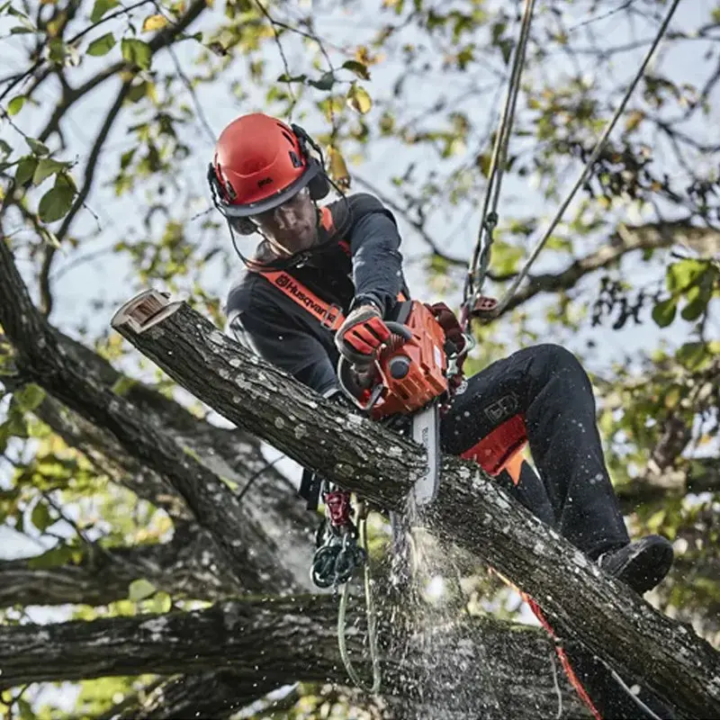 • Петля для крепления троса, расположенная на корпусе, облегчает подъем с пилой на дерево и предотвращает падение инструмента
