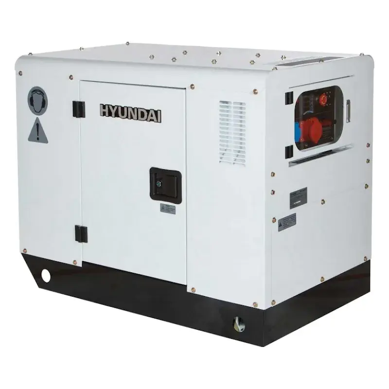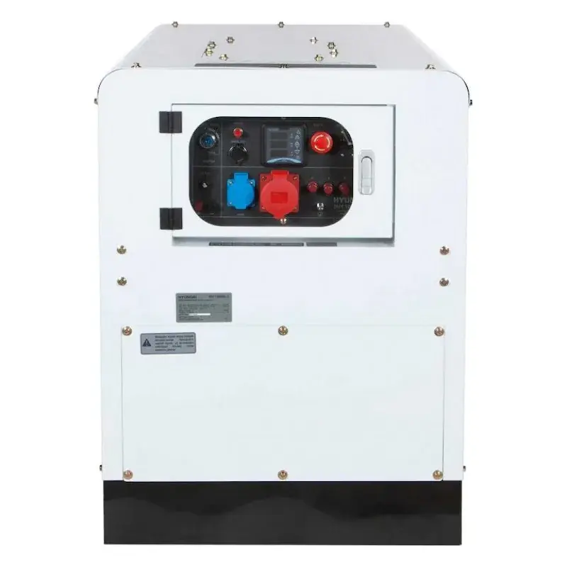 Дизельный генератор Hyundai DHY 12000SE-3 оборудован защитным металлическим корпусом с амортизацией и шумопоглощением. Уровень звукового давления при максимальной нагрузке на двигатель не превышает 69 дБ на расстоянии 7 м от аппарата. Это позволяет устанавливать электростанцию в жилом помещении или вблизи рабочего места.