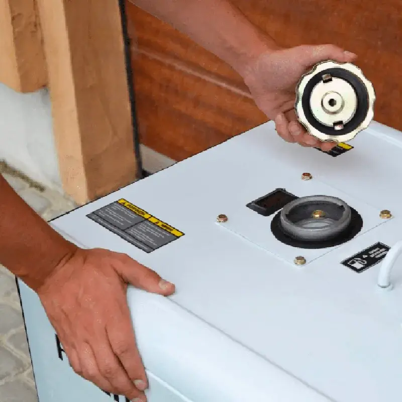 Топливный бак объемом 15 л изготовлен из высокопрочного металла. Одной полной заправки достаточно для непрерывного использования электростанции в течение 9,5 ч, если задействовать 75% нагрузки на двигатель. Контролировать уровень горючего легко, благодаря специальному индикатору на крышке бака.