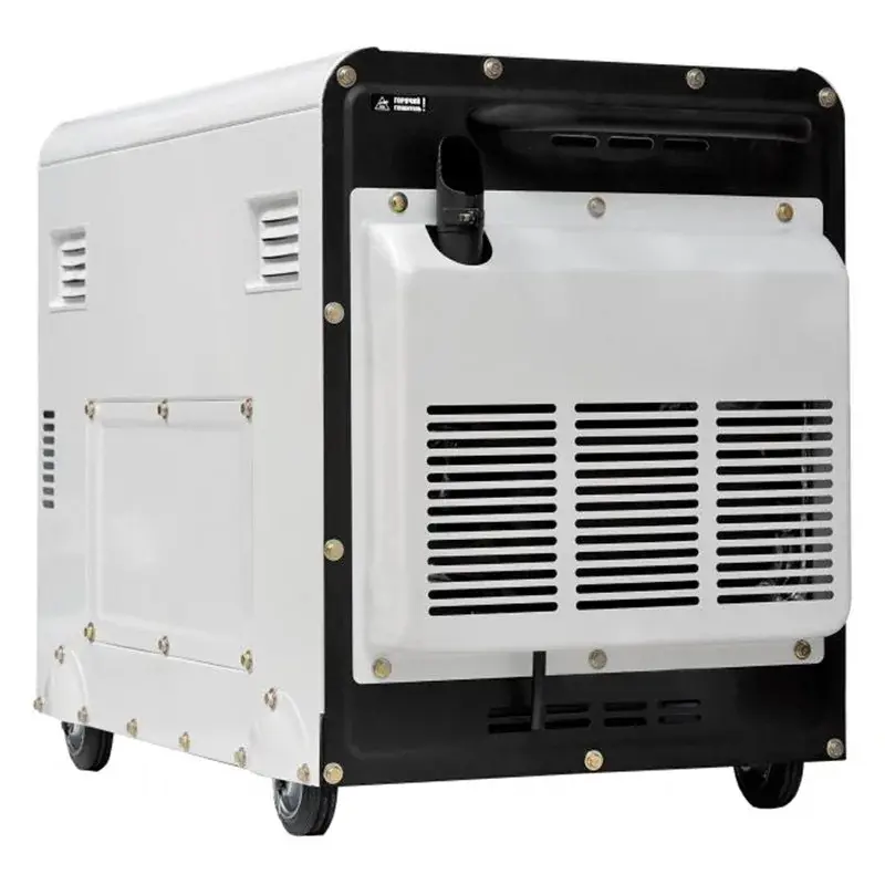 Металлическая рама ДЭС Hyundai DHY 8000SE с жестким каркасом гасит сильную вибрацию, а звукоизоляционные вставки снижают уровень шума. Закрытый стальной корпус защищает внутренние детали генератора от механических повреждений, пыли и осадков.
