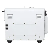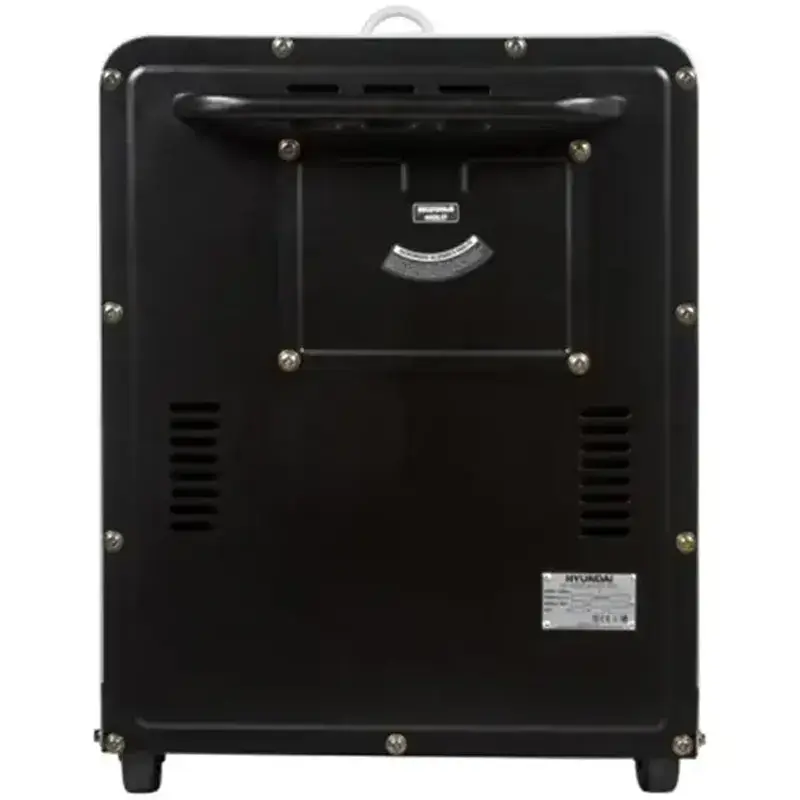 Звукоизолирующий кожух электрогенератора Hyundai DHY 8500SE-T позволил снизить шум во время работы до 72 дБ на расстоянии 7 м – генератор комфортно использовать. Устройство заключено в прочный стальной корпус для надёжной защиты от физического воздействия, погодных осадков. Наличие шасси позволит легко перевезти генератор в другое место, несмотря на большой вес.