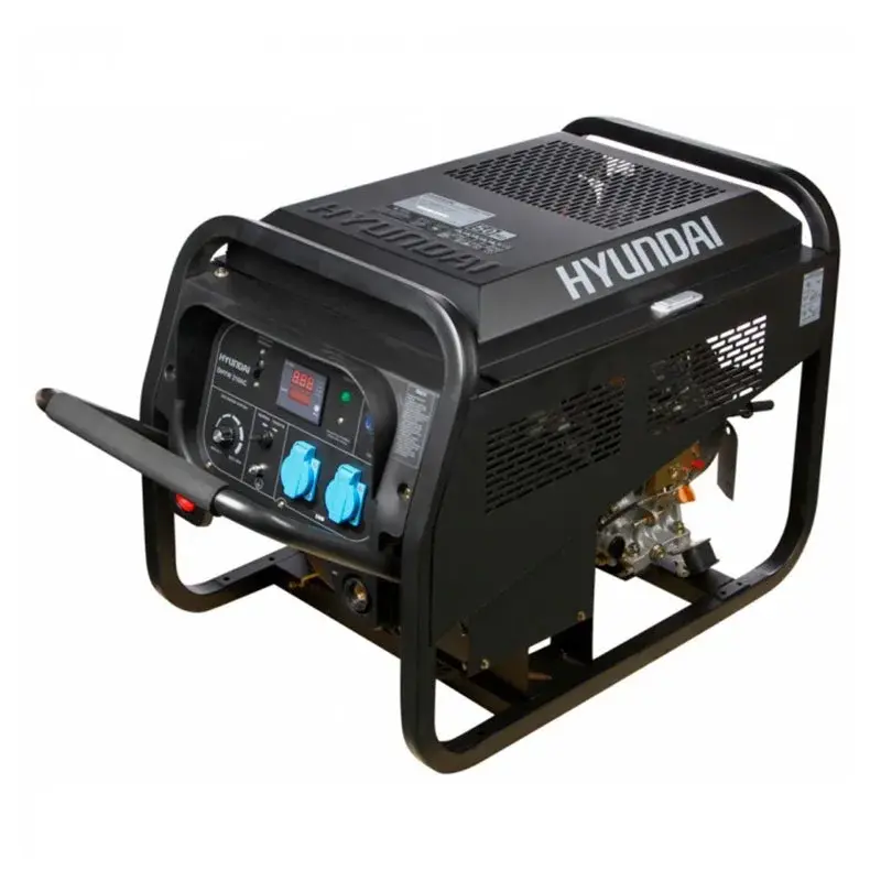 Дизельный сварочный генератор Hyundai DHYW 210AC подходит как в качестве резервного источника питания выходной мощностью 10 л.с, так и сварочного аппарата. Несмотря на то, что прибор создавался для профессиональных работ - управление крайне простое: для легкого включения есть электрозапуск, а дисплей покажет всю необходимую информацию.
