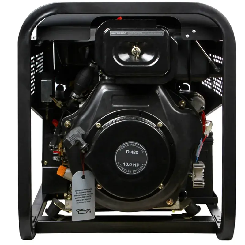 Рама защищает аппарат от механического воздействия, например, при транспортировке. Такая конструкция также позволяет устойчиво ставить электростанцию даже на неровную поверхность. При этом рама защищена от образования ржавчины антикоррозийным покрытием. Для перемещения техники с места на место предусмотрена рукоятка и 2 транспортировочных колеса.