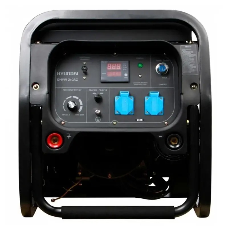 Дизельный сварочный генератор Hyundai DHYW 210AC подходит как в качестве резервного источника питания выходной мощностью 10 л.с, так и сварочного аппарата. Несмотря на то, что прибор создавался для профессиональных работ - управление крайне простое: для легкого включения есть электрозапуск, а дисплей покажет всю необходимую информацию.