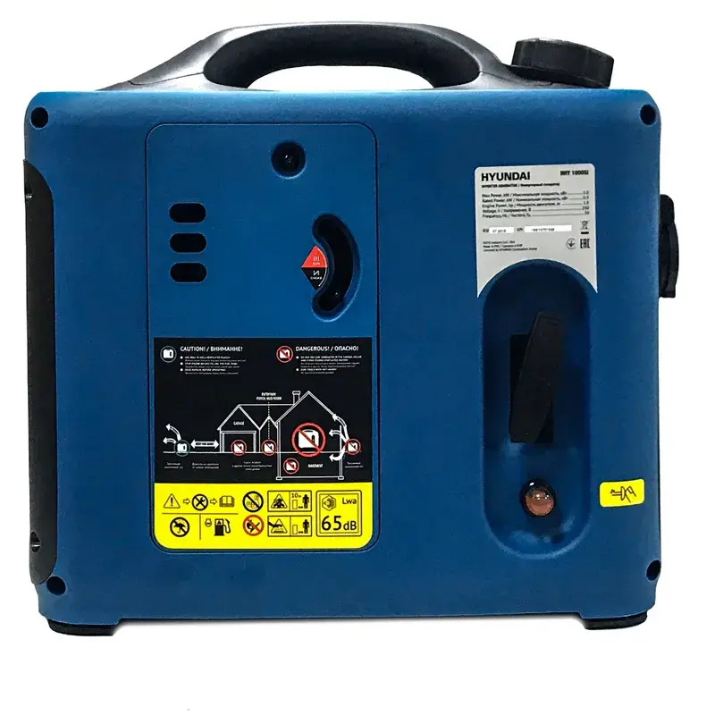 На панели управления бензинового генератора Hyundai HHY 1000Si находятся предупреждающие индикаторы. Светодиоды загораются под соответствующими надписями. Таким образом вы будете предупреждены о перегрузке, перегреве или повышенном напряжении переменного тока. О недостаточном уровне масла также подскажет соответствующий индикатор. Благодаря этому вы не пропустите время дозаправки.