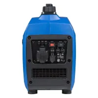 Инверторный генератор имеет закрытый влагозащищенный пластиковый корпус с эффективной шумоизоляцией, обеспечивающий низкий уровень шума и возможность использования в полевых условиях. Ориентировочная продолжительность работы при номинальной нагрузке составляет 4 часа. На панели управления находятся розетки на 230 В переменного тока, 12 В постоянного тока и USB-разъемы для подключения устройств-потребителей. Светодиодные индикаторы сигнализируют о низком уровне моторного масла, перегрузке и выработке переменного тока. Если необходимо повысить мощность электростанции, на лицевой панели предусмотрены клеммы для параллельного подключения второго генератора.