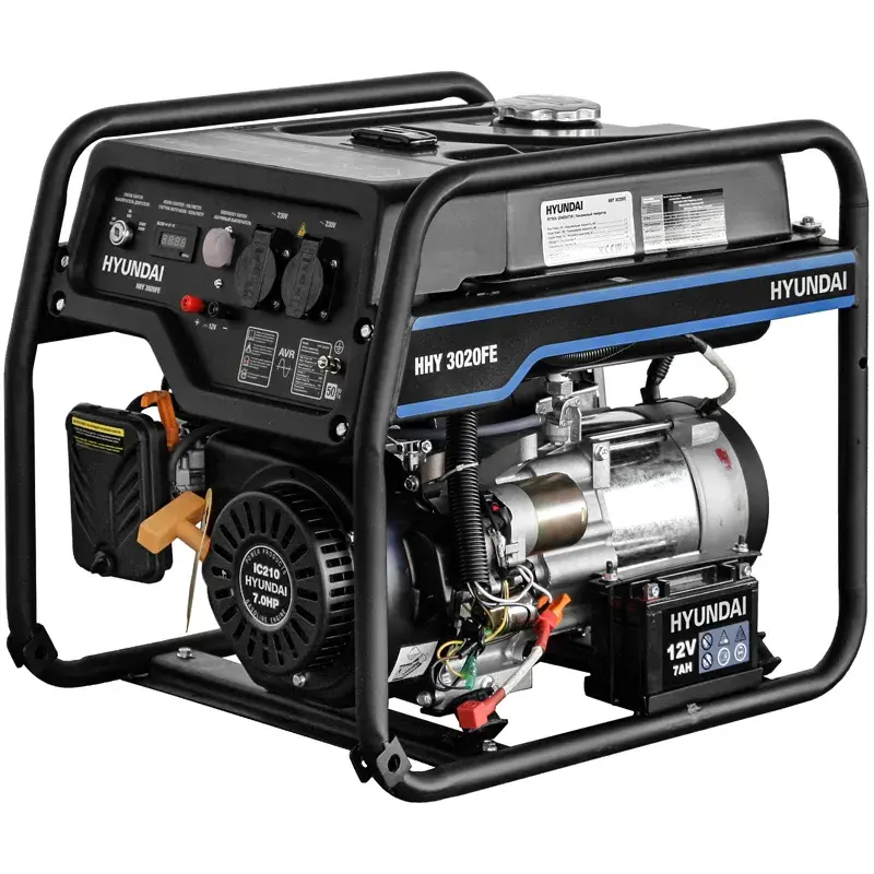 Бензиновый генератор Hyundai HHY 3020FE применяется в качестве автономного источника энергии как для бытовых, так и для профессиональных задач. Помимо ручного запуска предусмотрен электрический, который позволяет быстро завести мотор одним поворотом ключа.