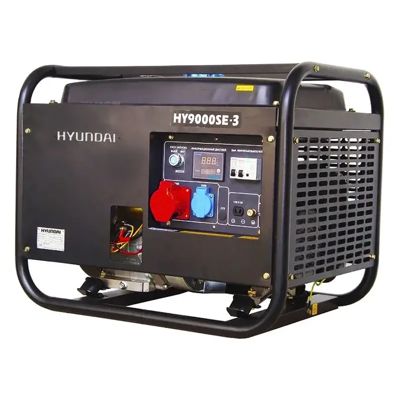 В бензогенераторе Hyundai HY 9000SE-3 установлен 4-тактный мотор с верхним расположением клапанов, который расходует меньше топлива, по сравнению с 2-тактными моделями. Он также работает гораздо тише и создает более низкий уровень вибраций.