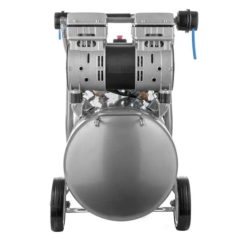 Безмасляный 2-поршневой компрессор оснащен сливным клапаном, который находится под ресивером. Он нужен для удаления лишнего конденсата, чтобы облегчить запуск двигателя.
