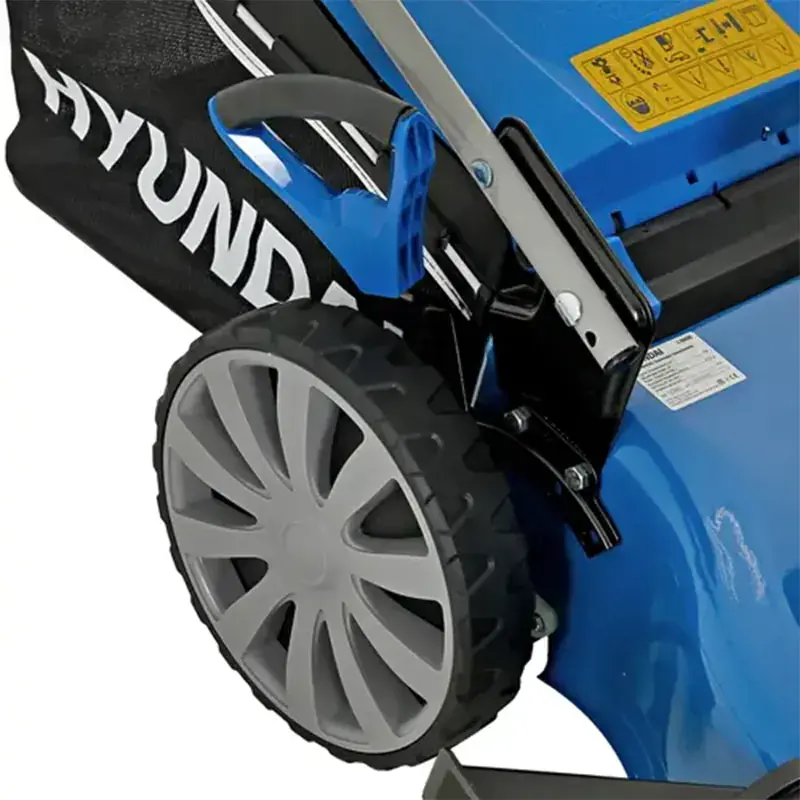 Самоходная газонокосилка Hyundai L 5620S с приводом на задние колеса в процессе работы передвигается самостоятельно, вам достаточно только направлять ее. Воздушный фильтр защищает двигатель от попадания срезанной травы и грязи. Для лучшей проходимости передние колеса имеют диаметр 203,2 мм, а задние — 279,4 мм. Шарикоподшипники обеспечивают плавность хода, увеличивают срок службы колес.