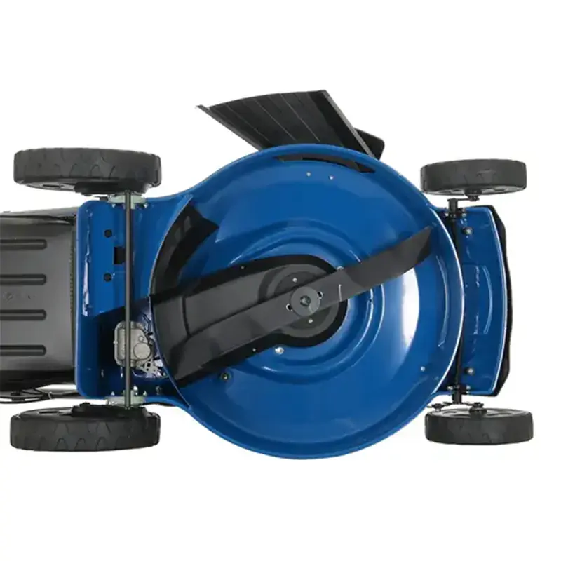 Двухлопастный нож обеспечивает бережный, ровный срез. При установке мульчирующей заглушки скошенная трава измельчается и остается на газоне в качестве природного удобрения. Режим бокового выброса позволяет скашивать высокие растения, не забивая травосборник.