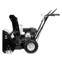 Прочные шнеки справятся даже с обледеневшими плотными комками снега. Модель идеально подходит для расчистки участков с сугробами высотой до 51 см. При этом снежная масса выбрасывается вбок с дальностью до 11 м. Этого достаточно для расчистки широких дорожек, где сугробы будут образовываться по бокам. Тем более, что направление желоба выброса регулируется вручную. Для этого есть соответствующая ручка, расположенная рядом с двигателем.