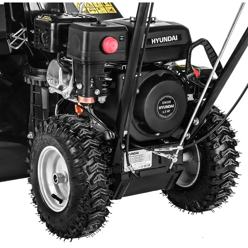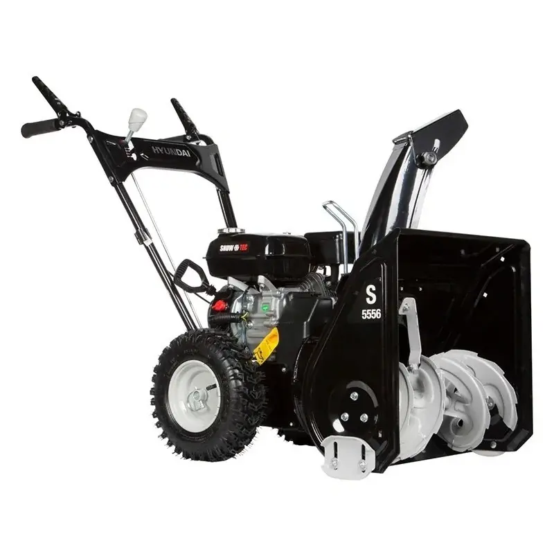 Бензиновый снегоуборщик Hyundai S 5556 с шириной уборки в 56 см будет эффективен на небольших загородных участках площадью до 1500 м2. Для простого перемещения машины по территории предусмотрен привод колес и несколько передач для регулировки скорости.