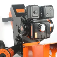 Ручной стартер располагается на боковой панели корпуса. Активация агрегата осуществляется вытягиванием пускового шнура. Эффективное измельчение происходит благодаря режущим элементам – ножам и фрезам. Частота вращения составляет 2400 об/мин, что позволяет быстро перемолоть материал.