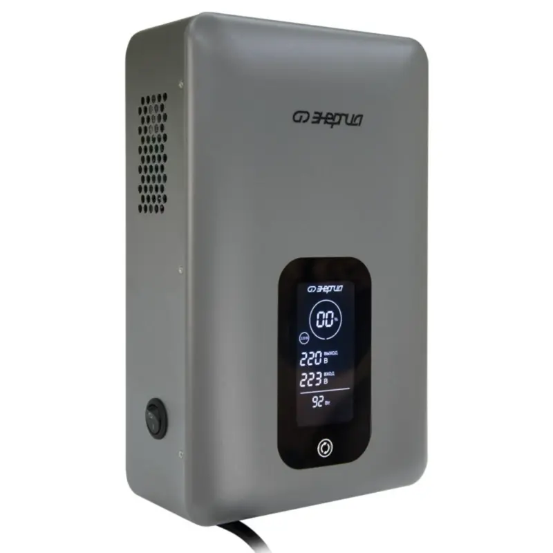 Стабилизатор напряжения Энергия Expert 5000 Е0101-0261 основан на принципе действия – двойного преобразования электроэнергии. Входной выпрямитель сначала превращает нестабильное сетевое напряжение в постоянное, затем инвертор на выходе преобразует его обратно в переменное с идеальным синусоидальным сигналом и высокой точностью ±2%. Регулировка напряжения осуществляется мгновенно, без задержек.