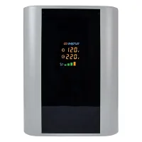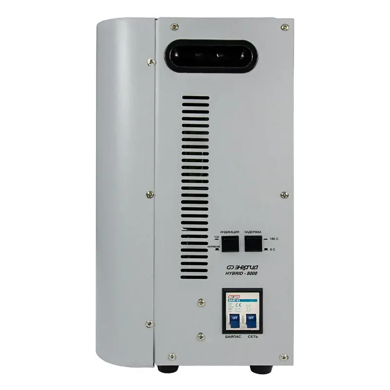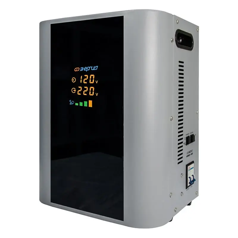 Принцип работы – комбинированный сервоприводно-релейный – в зависимости от напряжения сети. В диапазоне 105-144 В – релейный, а в диапазоне 144-256 В – сервоприводный. Сервоприводному принципу стабилизации присуща высокая точность, поскольку плавная регулировка позволяет добиться минимальных отклонений выходного напряжения от эталонного значения в 220 В. Релейный же принцип работы обеспечивает высокую скорость регулировки и расширяет рабочий диапазон входного напряжения.