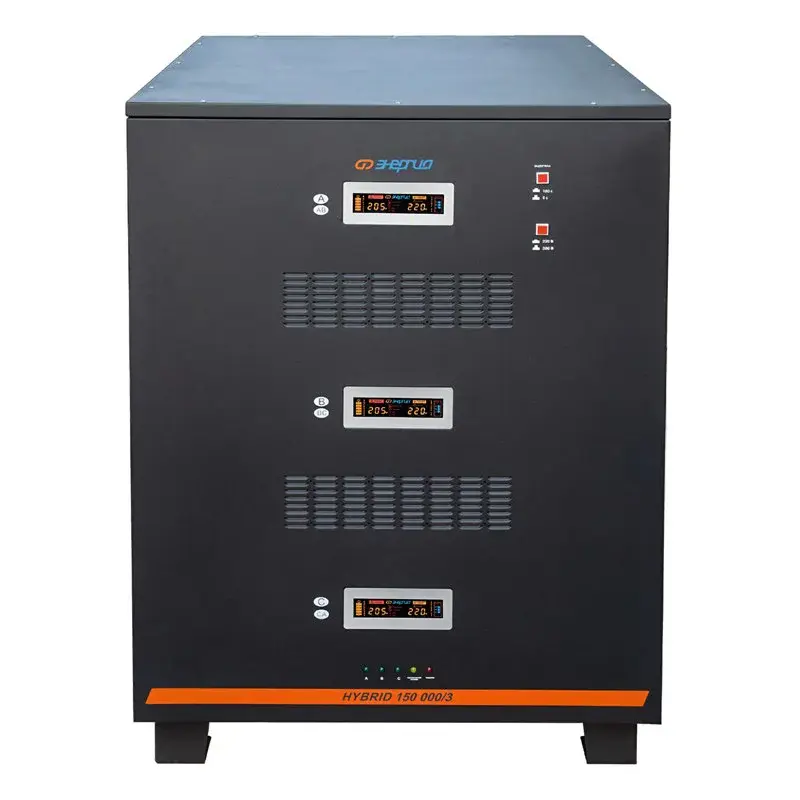 Принцип работы стабилизаторов серии Hybrid II поколения – комбинированный (электромеханический и релейный). Трехфазные стабилизаторы Hybrid отличаются высокой точностью, поскольку плавная регулировка позволяет добиться минимальных отклонений выходного напряжения от эталонного, а установленные реле обеспечивают высокую скорость регулировки и расширяют рабочий диапазон входного напряжения.