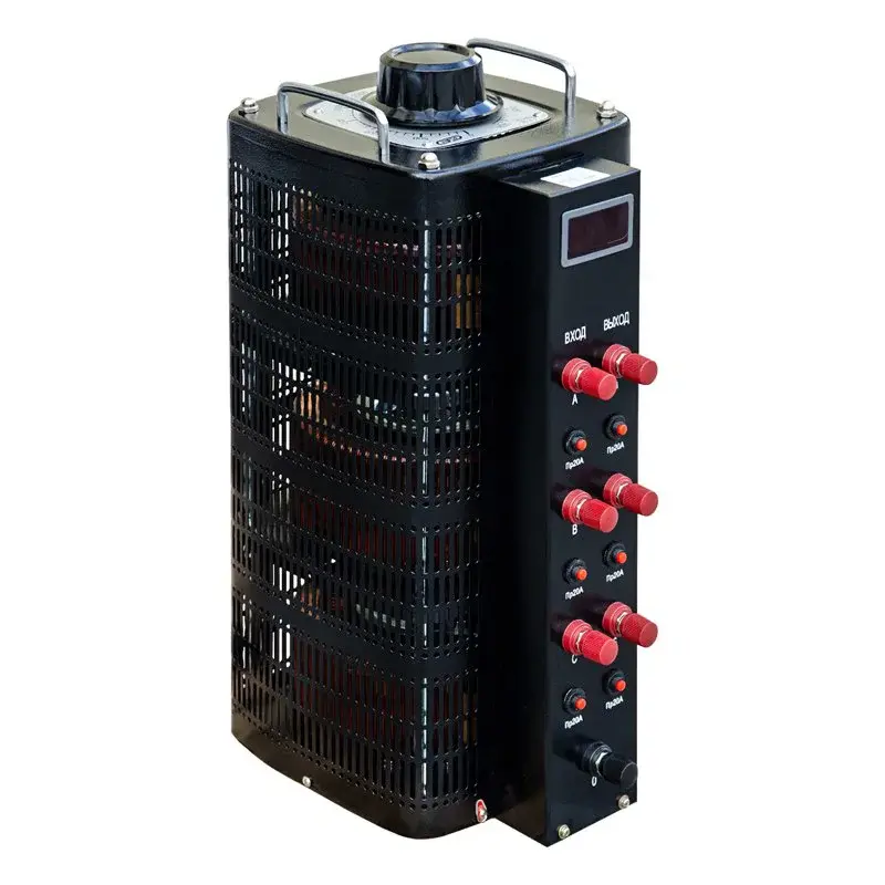 Лабораторный автотрансформатор (ЛАТР) серии TDGC, TSGC предназначен для плавного регулирования фазного напряжения от 0 до 300В под нагрузкой без разрыва цепи в трехфазной сети 380В 50Гц.