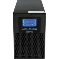 • LCD дисплей с кнопочным управлением. Индикация режима работы ИБП, входного/выходного напряжения, частоты, мощность нагрузки, температуры, заряд батарей, данные об ошибках и неисправности;