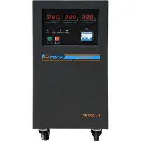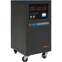 Стабилизатор напряжения ЭНЕРГИЯ Voltron 3D 15000/3 оборудован автоматическими выключателями, срабатывающими в случае короткого замыкания, перекоса фазы, пониженного напряжения или подключения нагрузки, превышающей рекомендованную. Для принудительного охлаждения при нагревании до 65_С включается вентилятор.