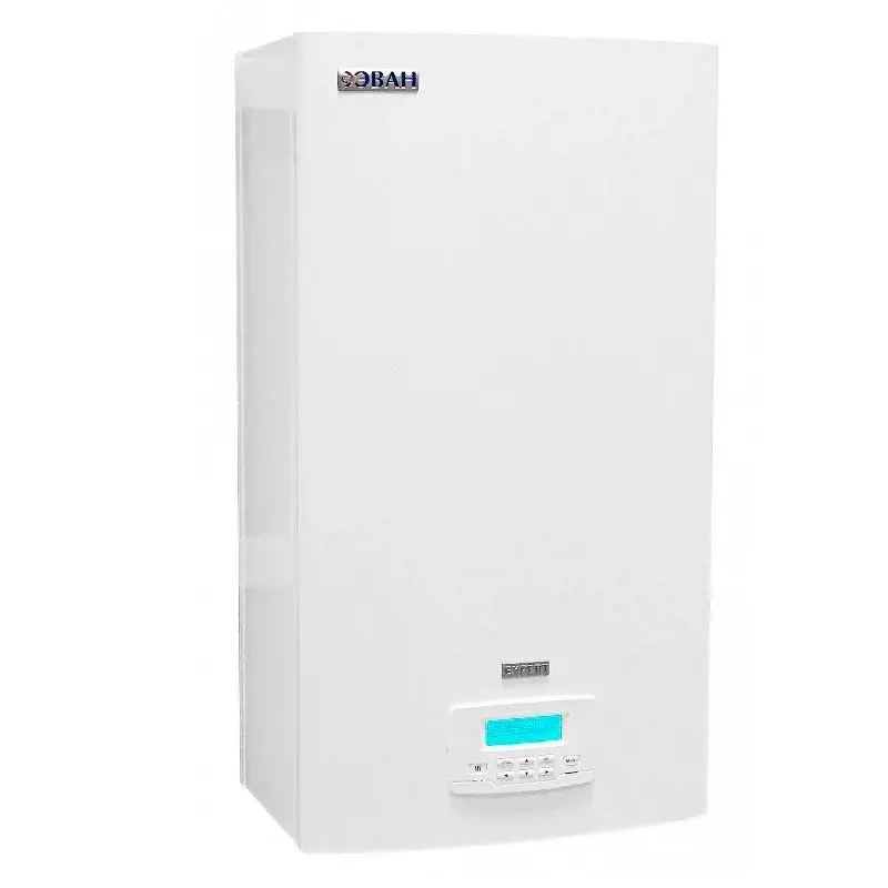 ЭВАН EXPERT – это электрический котел нового поколения, обеспечивающий самое экономичное энергопотребление и самые комфортные условия подключения и эксплуатации. Уникальный алгоритм нагрева, который использует прибор, основан на анализе уличной и комнатной температуры. Соответствующие датчики входят в комплект поставки. Постоянный мониторинг метеоусловий и мгновенная реакция на изменения как во внешней среде, так и внутри помещения позволяют электрокотлу поддерживать заданные климатические параметры в помещении максимально точно с минимальным потреблением электроэнергии. Прибор сам выбирает требуемую температуру теплоносителя и необходимое число задействованных ступеней мощности. Вмешательства человека в процесс нагрева не требуется. Необходимо лишь установить желаемую температуру в помещении, для чего в котле предусмотрено несколько различных режимов, в том числе и режим недельного программирования, при помощи которого можно выставить температуру воздуха для каждого дня и часа недели. ЭВАН EXPERT по комплектации представляет собой миникотельную, в которой уже есть всё необходимое, - встроенный циркуляционный насос, расширительный бак, воздухоотводчик. Многоступенчатая система защиты обеспечивается аварийным самовозвратным датчиком (защита от перегрева), предохранительным клапаном (защита от избыточного давления), автоматическим выключателем (защита от токов короткого замыкания). Благодаря контролю наличия фаз при пропадании одной из фаз автоматика и органы управления котла переключаются на работу оставшейся. При этом автоматика учитывает излишнюю переработку силовых реле и ТЭНов на оставшихся фазах, и при восстановлении нормального питания равномерность расхода восстанавливается. ЭВАН EXPERT может управлять работой косвенного бойлера ГВС (приобретается отдельно). Управление реализовано по принципу приоритета нагрева воды для водоснабжения. То есть, если температура воды в бойлере опускается ниже заданного значения, котел путем переключения трехходового клапана направляет поток теплоносителя в змеевик водонагревателя. Ещё одна отличительная черта нового электрокотла – расширенные сервисные возможности. Сервисное меню ЭВАН EXPERT имеет уникальный режим отладки, при помощи которого можно проверить срабатывание каждого из органов управления.