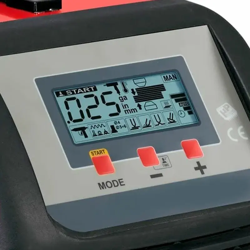 Споттер оснащен ЖК - дисплеем, который позволяет активировать импульсный режим точечной сварки, а также выбирать отображаемую единицу измерения: мм, “, g. При необходимости можно устанавливать толщину листа или выставлять время работы.