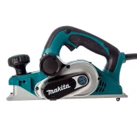 Рубанок Makita KP0810 предназначен для строгания балок и досок, скашивания кромок и подгонки элементов. Мощный двигатель на 850 Вт обеспечивает высокую производительность. Основные элементы управления дублируются, что делает эксплуатацию удобной.