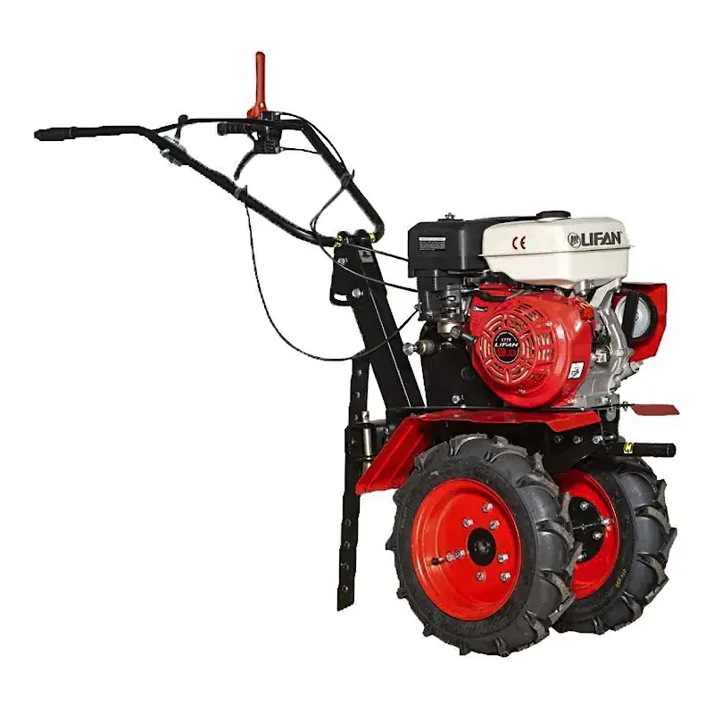 Регулировка скорости позволяет качественно обрабатывать участок любой сложности. В комплекте поставляются фрезы культиваторы с шириной обработки 720 мм и глубиной 300 мм.