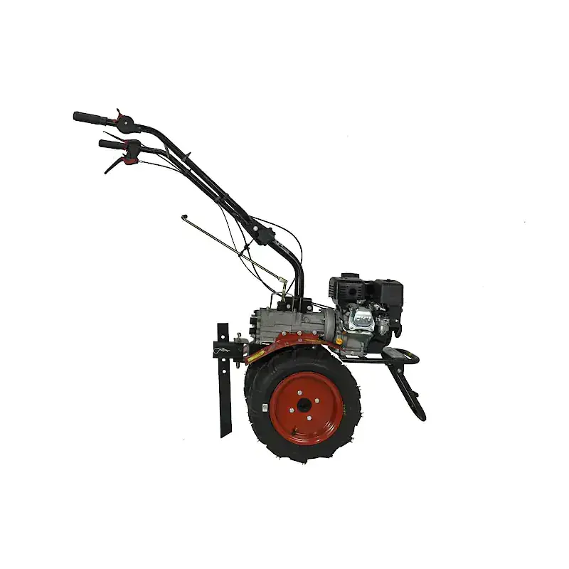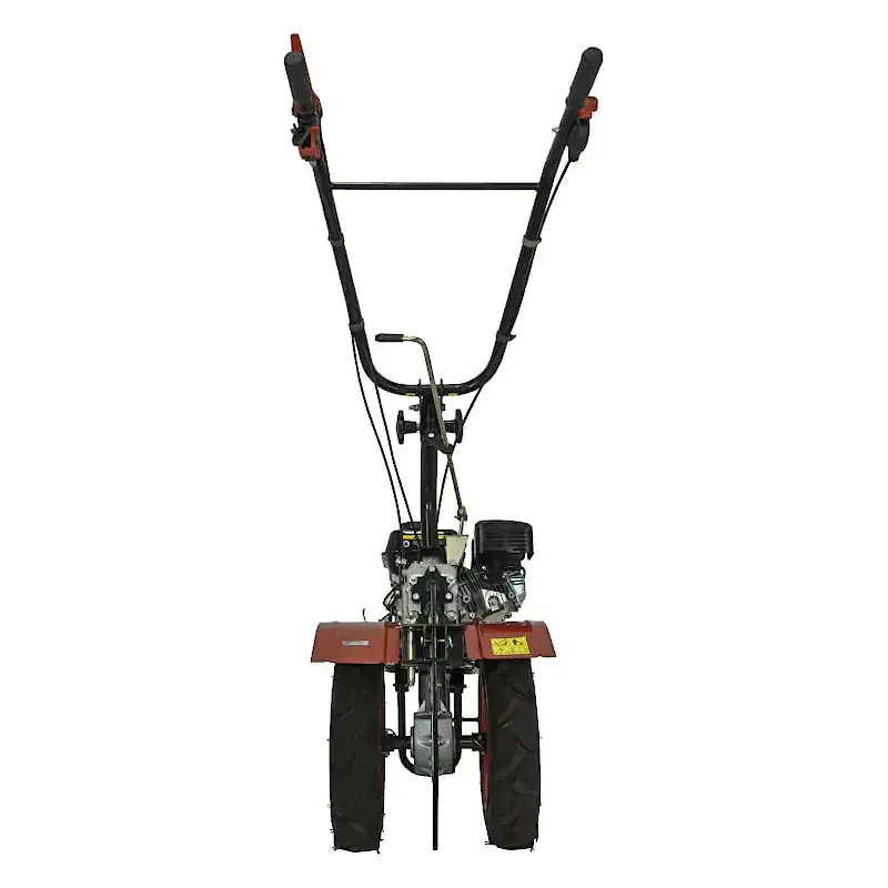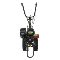 Коробка передач состоит из трех передач, а также реверса. Вал отбора мощности позволяет подключать широкую гамму дополнительных навесных орудий. Колеса не нанесут ущерб почве во время обработки благодаря способности руля разворачиваться в горизонтальной плоскости.