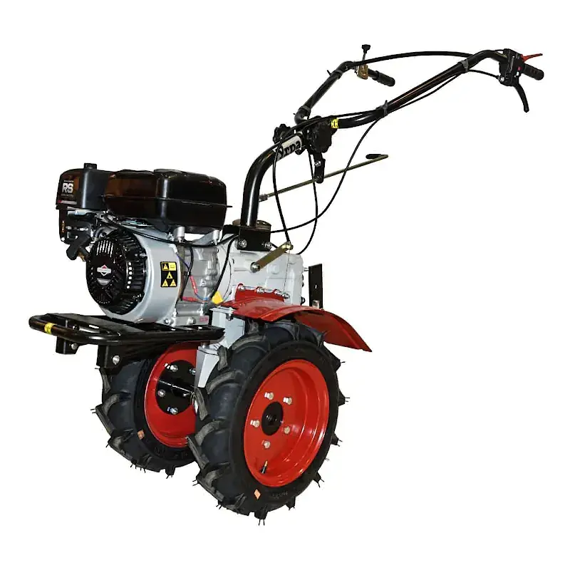 Задняя передача помогает, если нужно вытащить мотоблок из почвы без больших затрат сил и времени. Также в зависимости от поставленной задачи можно изменять ширину вспашки от 40.5 до 71.5 см. Защитные крылья предотвращают попадание земли на двигатель и оператора.