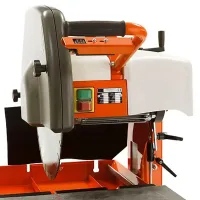 Асинхронный двигатель имеет высокий КПД до 90%, выдерживает большие нагрузки. Тепловое реле защищает его от перегрева. Металлический кожух закрывает большую часть пильного диска во избежание случайного контакта с лезвием.