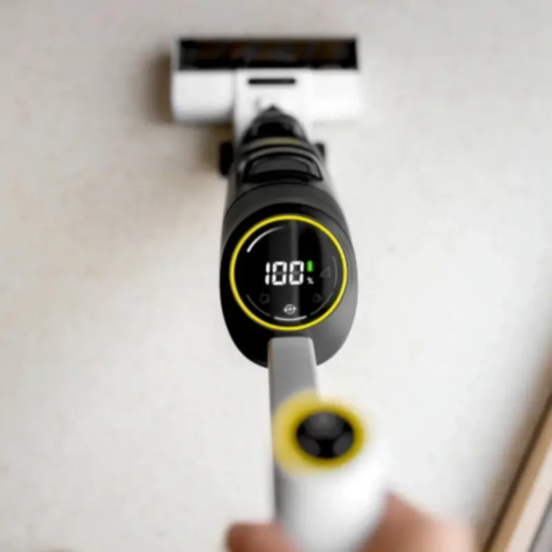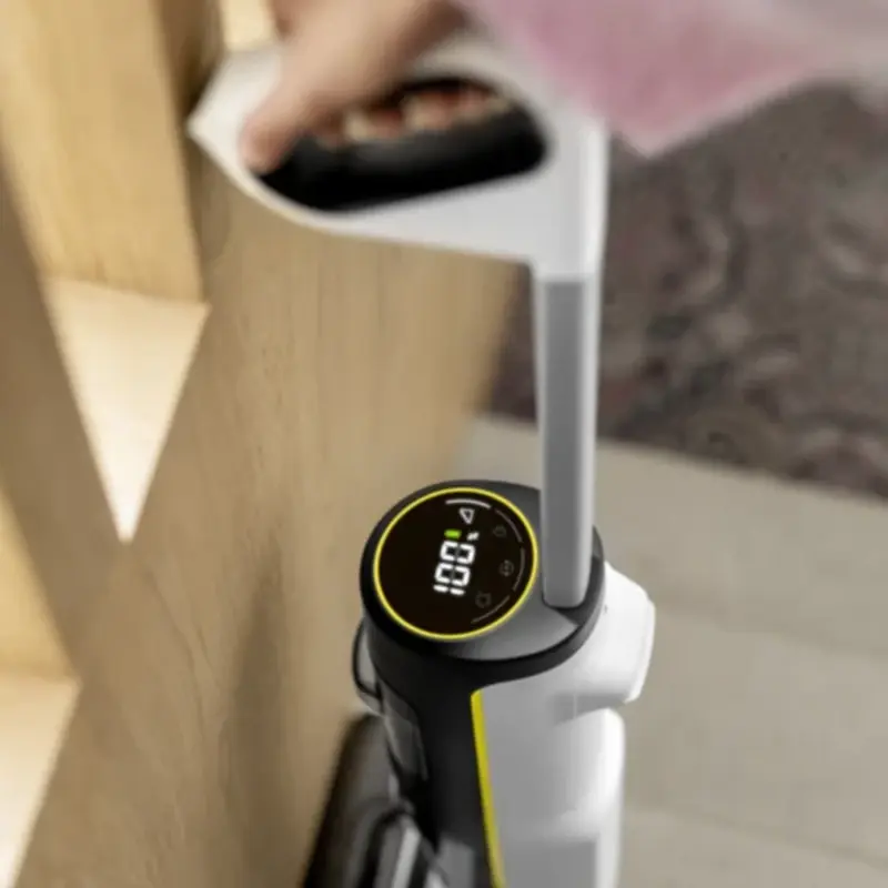 Прогрессивная технология Hygienic!Spin с частотой вращения роликовой щетки до 500 об/мин обеспечивает не только превосходный результат влажной уборки, но и удаление до 99 % бактерий, т. е. гигиеническую чистоту. Мощный бесщеточный двигатель постоянного тока и долговечный аккумулятор, запаса энергии которого хватает на долгое время работы (до 45 минут), позволяют без перерывов очищать полы площадью до 200 кв. м. При этом 3,2-дюймовый дисплей Vision!Clean, функция автоматического включения/выключения, функция самоочистки и возможность гигиеничной очистки роликовой щетки Pure!Roll в стиральной машине гарантируют пользователю максимальный комфорт.