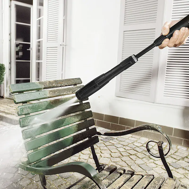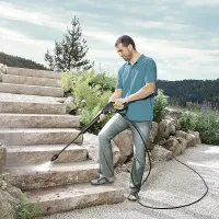 Производительности мойки высокого давления хватает на очистку поверхности площадью 40 м2 за один час. В комплекте поставляется струйная трубка Vario Power. Она позволяет вручную снижать давление на выходе для бережной очистки лакокрасочных покрытий или повышать, чтобы убрать присохшую грязь с прочной поверхности. Дополнительно есть грязевая фреза, которая формирует мощную точечную струю и помогает избавиться от особо стойких загрязнений.