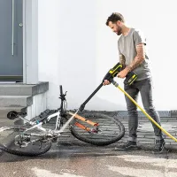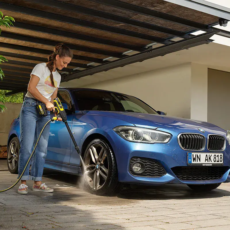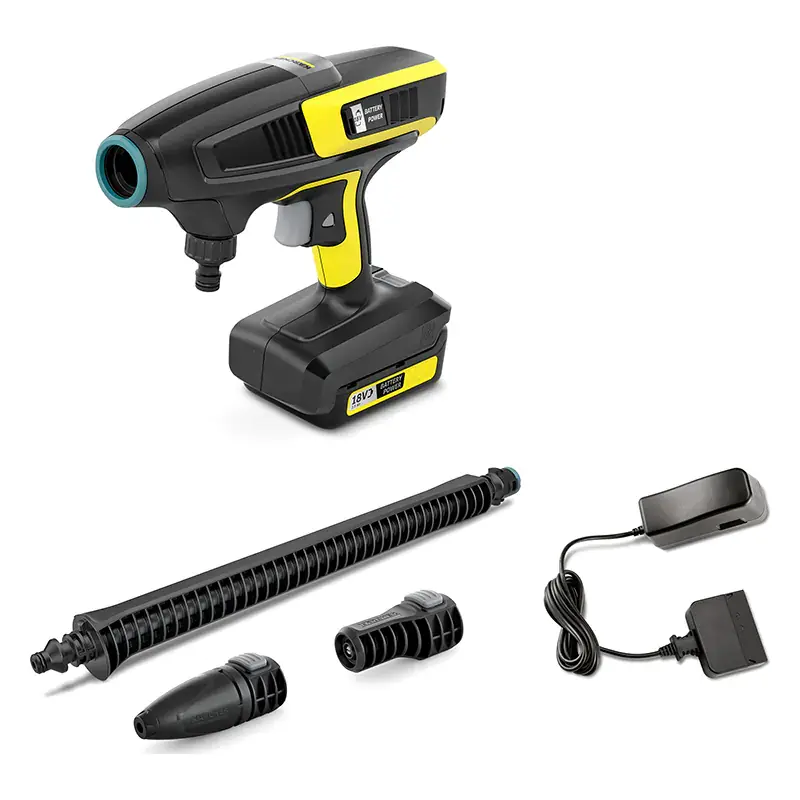 Аппарат среднего давления Karcher KHB 6 Battery Set пригодится владельцам загородных домов, дачникам, туристам и людям, любящим приключения и активный образ жизни. С помощью портативной мойки Karcher можно очистить от грязи, все, что находится вокруг дома и на приусадебном участке, а также туристическое снаряжение после походов, велосипеды, мотоциклы, детские игрушки и т.п. Производительность модели составляет 200 л/час, а вода подается под давлением 24 бар, что оптимально для бытового применения. Как работает Мойка Karcher KHB 6 Battery работает от съемного 18-вольтового аккумулятора емкостью 2,5 Ач, поэтому не нуждается в подключении к электросети. Время работы на одном заряде аккумулятора составляет 12 минут. Аппарат для мойки подключается к водопроводу или всасывающему шлангу для забора воды из открытых источников. Максимальная температура воды для мойки составляет 40°С. Устройство распыляет воду под высоким давлением, что позволяет эффективно счищать пыль и грязь с различных поверхностей без дополнительных физических воздействий. В комплект входят две базовых насадки: веерная и роторная. Установите первую, если требуется бережная очистка хрупких поверхностей: садовой мебели, ковров, игрушек. Вторая подойдет для создания мощной струи, которая удалит стойкие загрязнения с садового инвентаря и техники. Особенности модели Karcher KHB 6 Battery имеет компактные габариты и весит чуть больше килограмма, поэтому работать неутомительно. Встроенный фильтр для воды предотвращает засорение прибора. Для контроля за зарядом батареи и оставшимся временем работы предусмотрен цифровой дисплей на корпусе устройства. Для подключения аксессуаров используются удобные байонетные соединения, сочетающее надежность и быструю фиксацию.